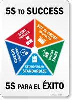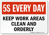 It is typically a high-visibility red and white sign. These signs reinforce the organizational structure detailed on the 5s sort set in order sign.