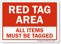 5S Tag Signs are great for marking the red tag holding area in your facility. Bold, red and white signs draw attention to the area where non-conforming and rejected products are stored. Whether you are looking for circular floor signs or durable aluminum signs for wall and post mounting – our gallery will help you meet the purpose.
