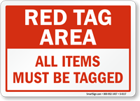 5S Tag Signs are great for marking the red tag holding area in your facility. Bold, red and white signs draw attention to the area where non-conforming and rejected products are stored. Whether you are looking for circular floor signs or durable aluminum signs for wall and post mounting – our gallery will help you meet the purpose.
