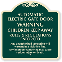 Got gates? If so, you will most likely need an Entrance sign. Troll through the huge selection of Gate Entrance signs below to label the gate entryway, gate & guard rules, and gate safety warnings. Signs make it safe and easy to pass through the gate at your community, compound, or complex.