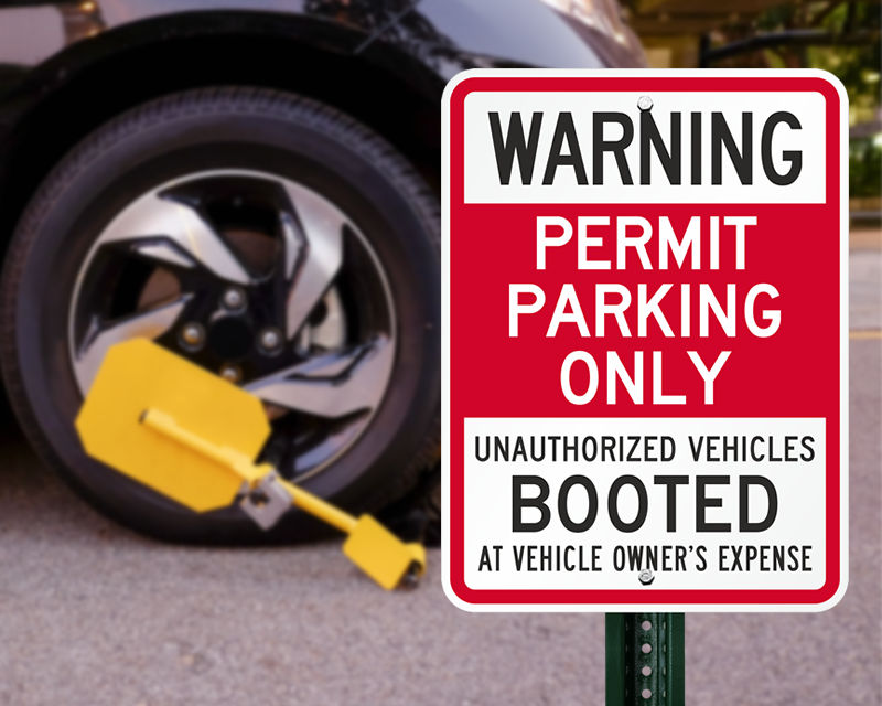 Auto boot warning signs should be installed at all vehicular entrances to your private parking facility, lot, or garage.