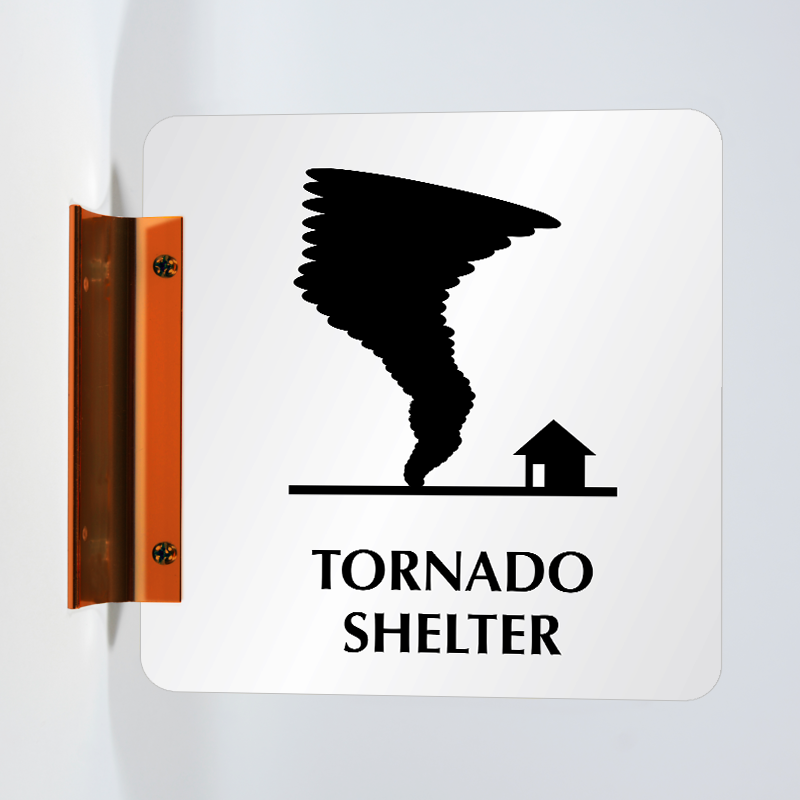When a tornado comes it is urgent to get to shelter. Place this double sided tornado shelter sign so that everyone knows exactly where to go.