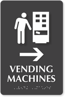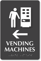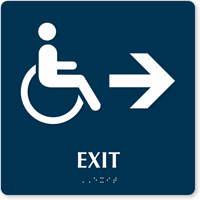 These are wayfinding signs like restrooms this way that include tactile characters and Grade 2 Braille to assist visually impaired people.