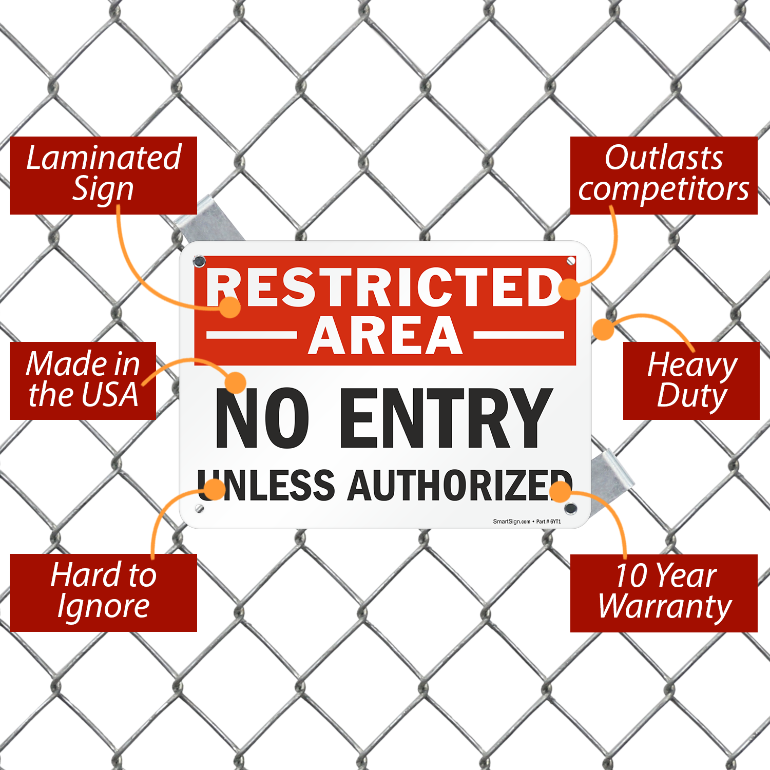Keep unwanted visitors out with a No Entry Unless Authorized sign and make safety a priority.