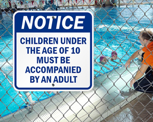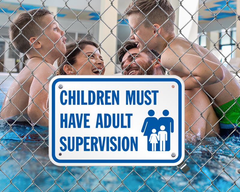 If you're a pool manager, you cannot legally operate your swimming pool without Adult Supervision Pool Signs or signs specifically denoting that children will be watched. With the obvious hazards of a swimming pool, it is never safe to swim alone, especially for children. Adult Supervision Pool Signs guarantee safe practices at your pool from parents and children alike.