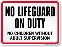 You can use our custom “No Lifeguard On Duty” sign template to add a specific age to your sign. The customization tool allows you to add specific text that indicates children under the specified age must not use the pool without adult supervision. Your text can be adjusted for size, font, and alignment.