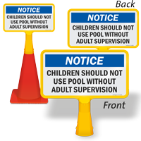 ConeBoss Signs, on the other hand, need a traffic or safety cone for mounting. Made of rigid, 3/16” thick, injection-molded plastic, Cone Signs for pools fit snuggly over most common sized traffic cones.