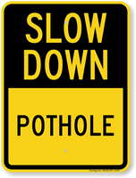 They are standard warning signs, so they feature a black symbol or text on a yellow diamond background. This high-contrast color scheme is designed to command attention from a distance, even in inclement weather.