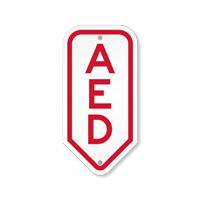 AED signs come in multiple sizes and durable materials like aluminum and plastic. Weather-resistant aluminum is ideal for outdoor locations, while plastic is common for indoor use.
