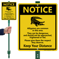 Alligators are ambush predators. Signs alert visitors to keep their distance, much like the high-priority warnings found on our osha danger signs.