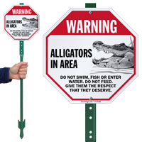 They are needed near bodies of water in regions inhabited by alligators, such as golf courses, parks, and residential lakes. You can find these in our alligator warning signs category.