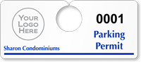 Our Apartment Parking Permit Hang Tags feature mirror cut-outs and are designed for a variety of rearview mirrors. You may simply loop the tags over your rearview mirror and be assured that these will still be in place unless moved deliberately.