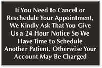 Our Appointment Signs communicate appointment etiquette with polite reminders in your place of business.