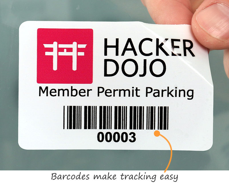 Scan these Barcode Parking Permits with any portable scanner or a SmartPhone. Identify a vehicle in seconds. Extra large barcodes can be scanned from a distance or through most window glass. Find two types of barcode permits: Barcode Mirror Hang Tags and Barcode Window Decals.