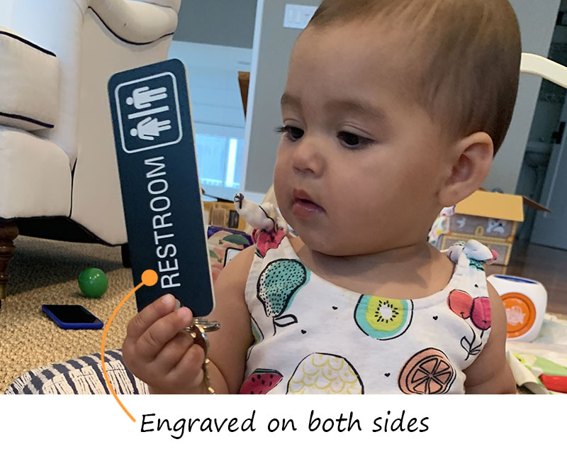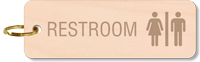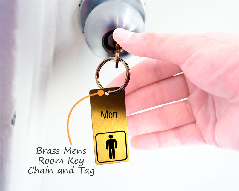 • • Stock restroom key chains feature print on one side. With our Custom Bathroom Key Chains, we offer the option to print your message on both sides.