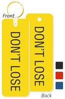 • • Each keychain features sturdy 1/8” crackproof plastic that resists warping and bending. A Brass key ring attached to your bathroom key tags holds your keys.