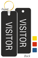 • • Each keychain features sturdy 1/8” crackproof plastic that resists warping and bending. A Brass key ring attached to your bathroom key tags holds your keys.