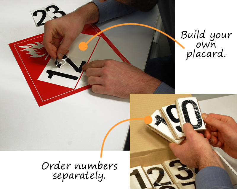 • • Select the appropriate hazard classification and division style placard, then fill in the 4-digit identification number by hand or use our self-adhesive numbers (sold separately below).