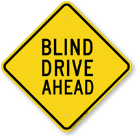 Slow down! Blind corner is ahead. Blind corners exist because of a curve, landscaping, parking cars or a hill. In all cases, a blind corner sign gives everyone advanced warning of the potential for a vehicle to suddenly appear.