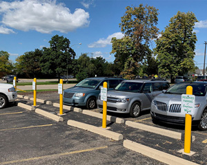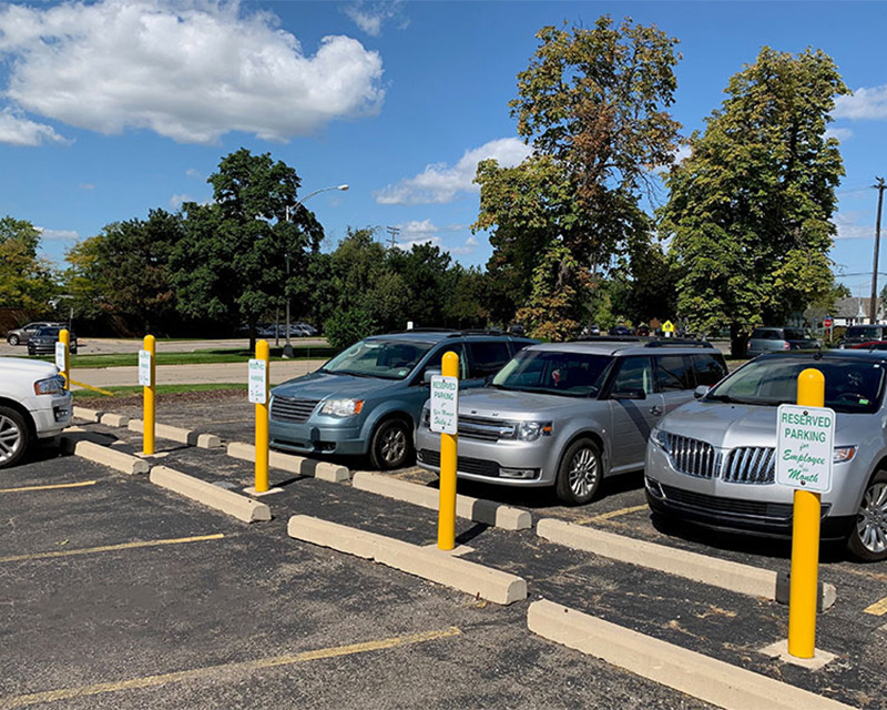 Yes, there are specific "Bollard Sign Systems" that allow you to mount a parking sign (like "curbside pickup" or "handicap parking") directly onto the top of a bollard, saving space.