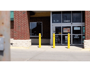 A bollard post is a sturdy, vertical post (usually steel or concrete) installed to protect buildings, pedestrians, and equipment from vehicle impact. They are common in front of store entrances and gas pumps. You can view a bollard comparison chart here.