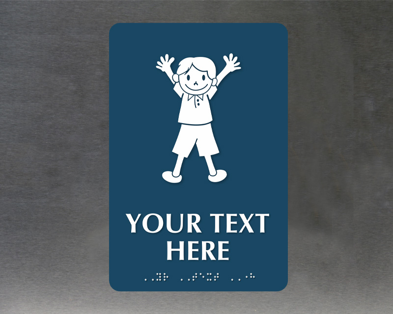 While standard blue or black are common, we offer boys bathroom signs in a wide range of bright colors to match your school's spirit or interior design.