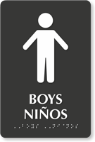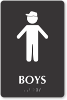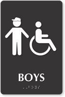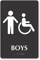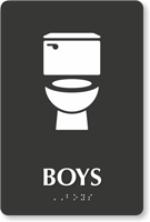 Yes, they are available with raised icons, Grade 2 Braille, and tactile text to meet all accessibility standards for school buildings. Under federal law, restrooms in public schools must be identifiable by all students, making accessibility signs with braille a requirement for permanent bathroom installations.