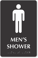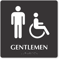 We use Grade 2 Braille on our men’s restroom signs to ensure they comply not only with Federal but with California specifications as well. These signs are tactile as well and have raised characters in compliance with ADA.