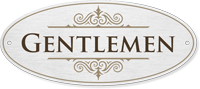 • • Perfect for upscale spaces, our designer Male Restroom Signs come in multiple colors to complement your decor.