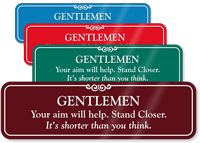 You may choose to customize a men’s restroom ShowCase sign by building on the two available custom templates. Alternatively, you may explore our wide variety of custom bathroom sign templates that let you choose your graphic, text, color, and more and personalize one to match your unique requirements.