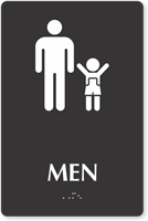 We use Grade 2 Braille on our men’s restroom signs to ensure they comply not only with Federal but with California specifications as well. These signs are tactile as well and have raised characters in compliance with ADA.