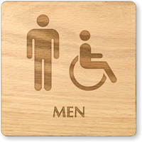 We make our wooden men’s restroom signs with 1/8" thick wood. These engraved signs look rather elegant and have rounded corners for safety. Each sign comes with adhesive foam pads for easy installation.