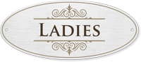• • Choose from scratch- and chemical-resistant Ladies Restroom Signs in various colors to match your interiors.
