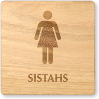 Wooden Women’s Room Signs are 125 mil thick, much thicker than the aluminum signs. The sophisticated wood signs are engraved and feature rounded corners for safety. Signs come with foam adhesive strips for easy application.