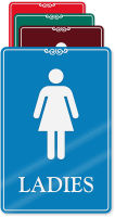 • • Choose from scratch- and chemical-resistant Ladies Restroom Signs in various colors to match your interiors.