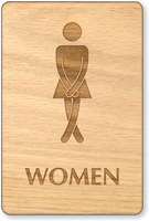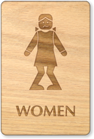 Wooden Women’s Room Signs are 125 mil thick, much thicker than the aluminum signs. The sophisticated wood signs are engraved and feature rounded corners for safety. Signs come with foam adhesive strips for easy application.