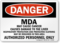 For many designated carcinogens, OSHA mandates the specific text "DANGER: CANCER HAZARD - AUTHORIZED PERSONNEL ONLY." Depending on the substance, additional warnings like "Respirators Required in This Area" may also be legally required on the sign. Using the exact prescribed wording is essential for regulatory compliance.