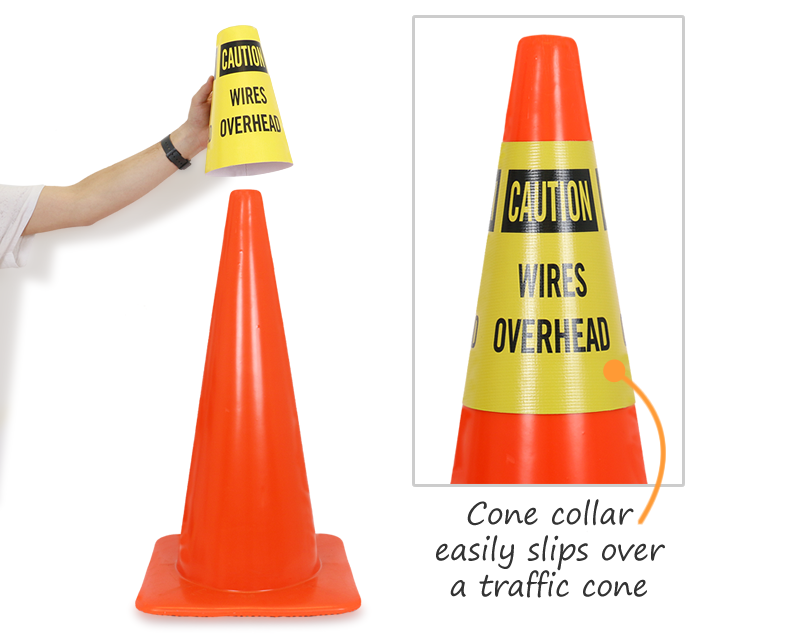 Yes. Our cone message collars are made from durable materials that hold up in outdoor conditions, making them suitable for parking lots, construction sites, loading docks, and outdoor event areas. Paired with standard orange traffic cones, they create highly visible, informative warnings that communicate the specific hazard or restriction beyond what a bare cone conveys on its own.