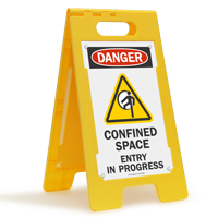 • • Use a Stand-up Floor Sign to prevent unauthorized personnel from entering confined spaces. Or, place a message on the ground with our adhesive Confined Space Floor Sign.