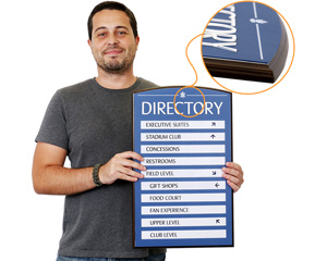 We offer a wide variety of materials, including engraved plastic, clear acrylic (ClearBoss), colored acrylic (Showcase), anodized aluminum, engraved brass, and multi-layer premium designer signs. We also specialize in custom ADA-compliant braille signs.