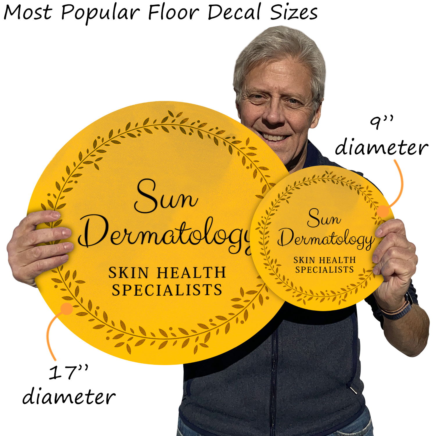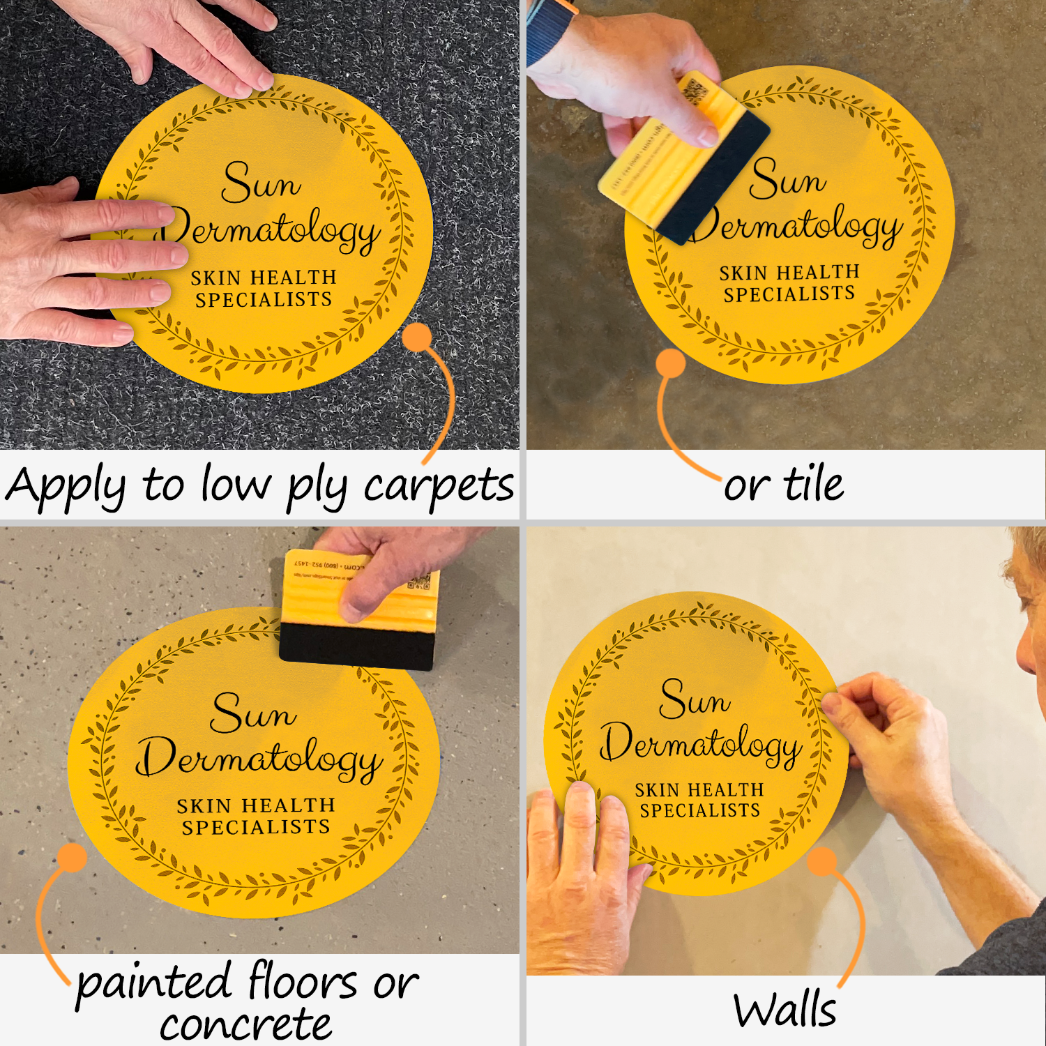 Not at all! We offer custom floor decals in various shapes, including circle, rectangle/square, diamond, triangle, octagon, arrow, and certain special shapes such as semicircle and paw. You may even create a decal in your custom shape.