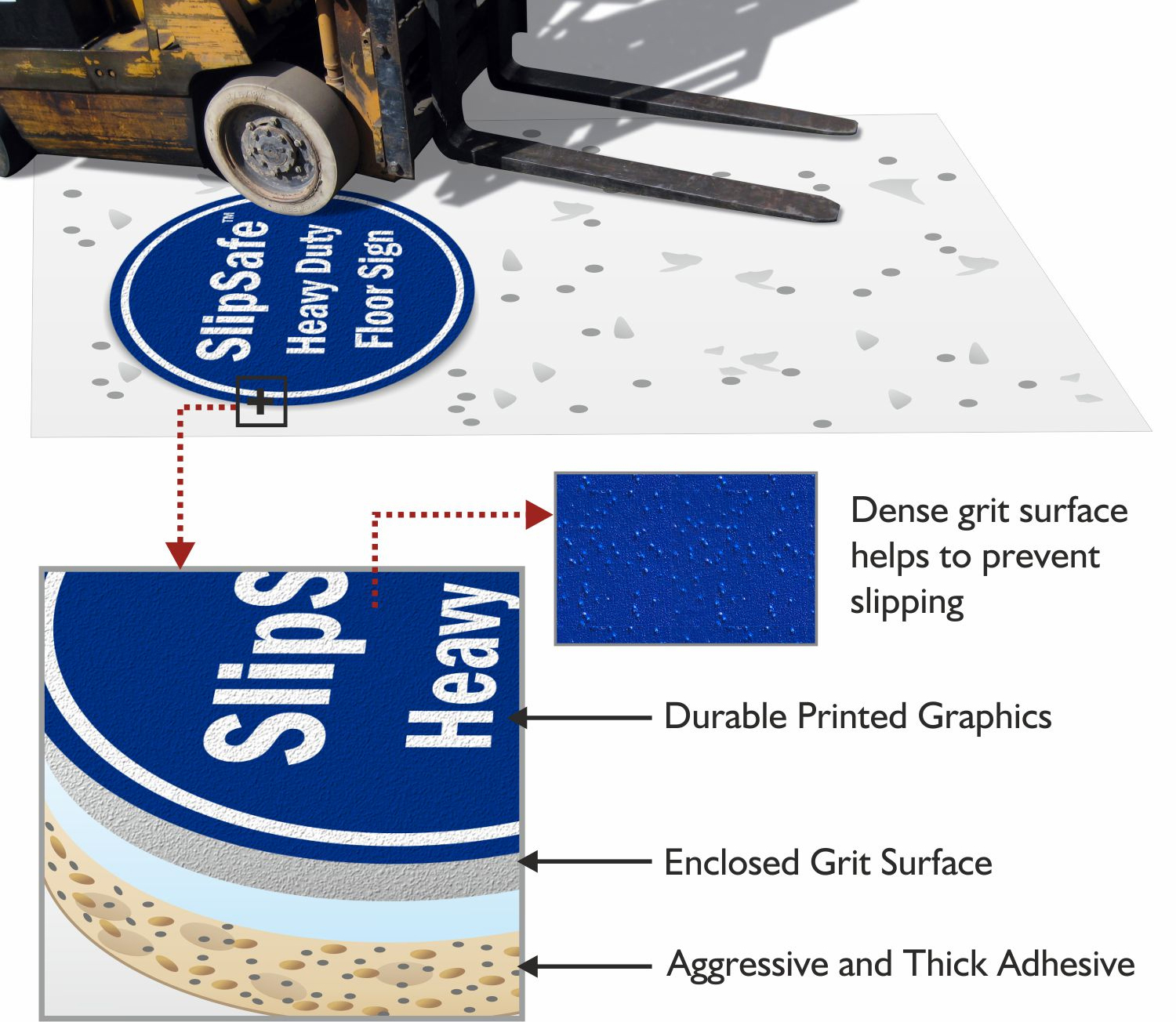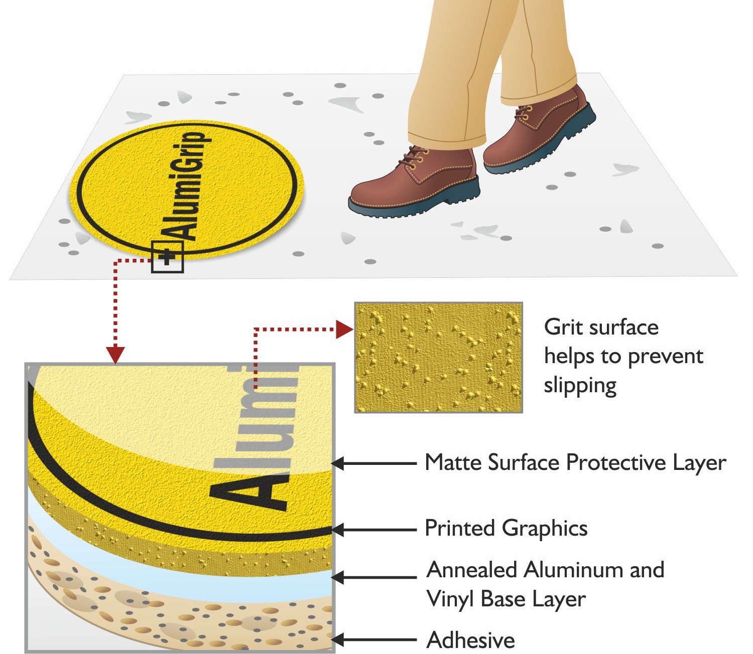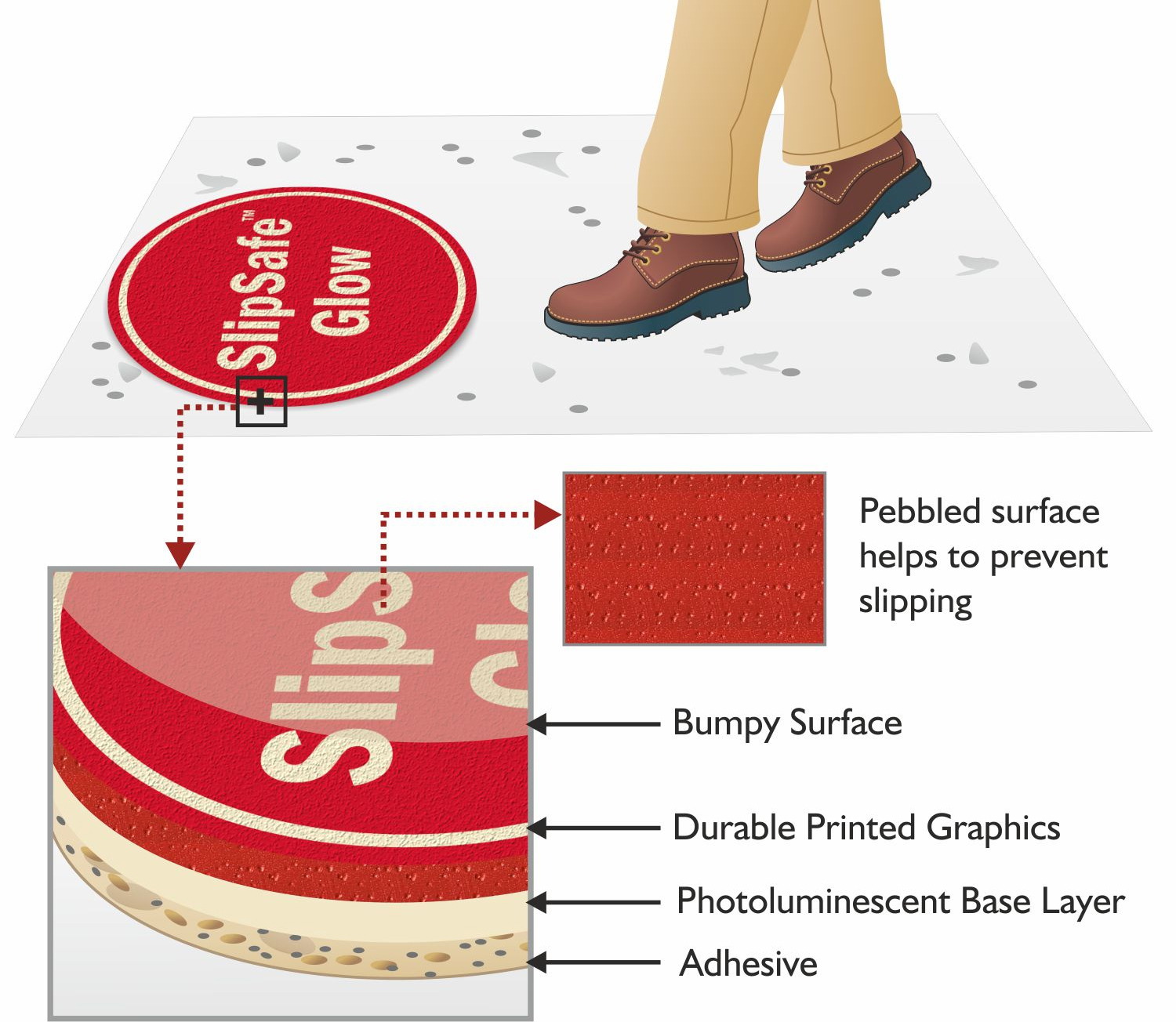 Absolutely! Our custom floor decals feature a textured, enclosed grit-top surface that makes slipping on these signs highly unlikely. The aggressive adhesive backing ensures the decals stay in place.