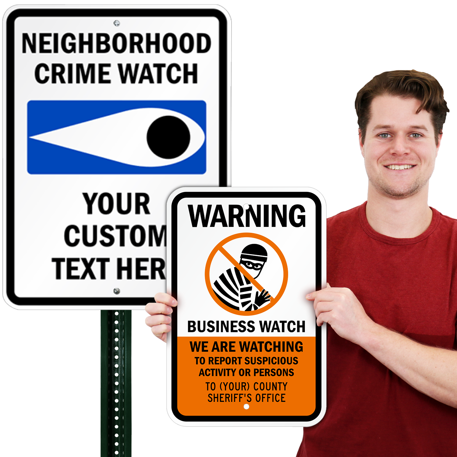 Add your own text to this crime watch sign. Easy access to important phone number