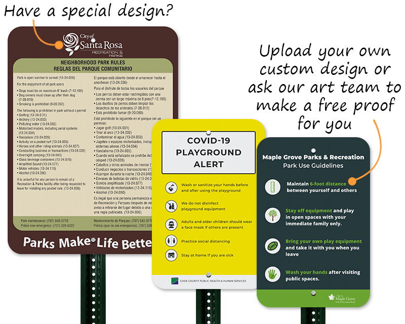 • • Using an existing template makes customization a breeze. Browse our collection of Custom Playground Signs below.