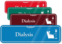Signs like these help patrons and staff find critical care areas like the Dialysis room swiftly.