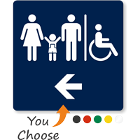 • • Our ADA-compliant Restroom Signs with Arrow feature symbols, raised letters, and California Grade II Braille for maximum accessibility.