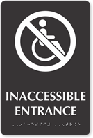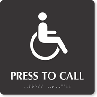 • • Made from thick, non-glare plastic, resistant to chemicals, scratches, and vandalism. Features raised lettering and Grade II Braille.
