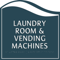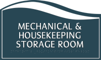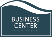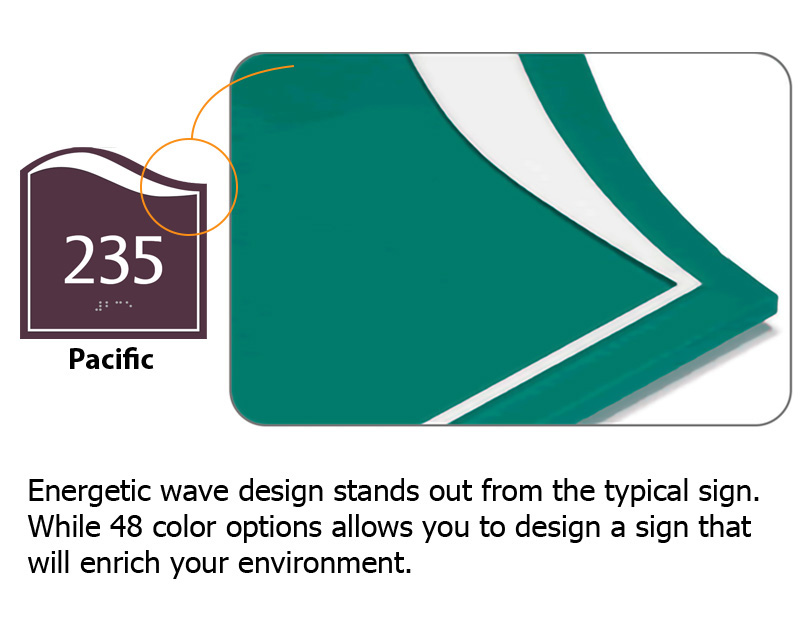 • • Raised white characters and Grade II Braille for permanent room signs are ADA compliant.