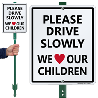 LawnBoss® Sign & Stake Kit: Please Drive Slowly We Love Our Children (with Heart Graphic) Learn More...