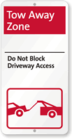 The most effective do not block driveway signs use direct language like "Do Not Block Driveway, Violators Will Be Towed," and our do not block driveway tow away sign is one of our most popular options because you can also customize it with your towing company's contact information for added authority.